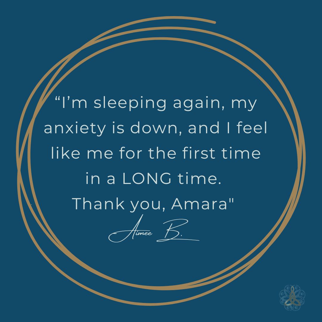"I hadn’t slept through the night in years, and I was running on caffeine. Amara guided me through a detox and introduced me to magnesium baths and nightly grounding rituals. I’m sleeping again, my anxiety is down, and I feel like me for the first time in a LONG time."