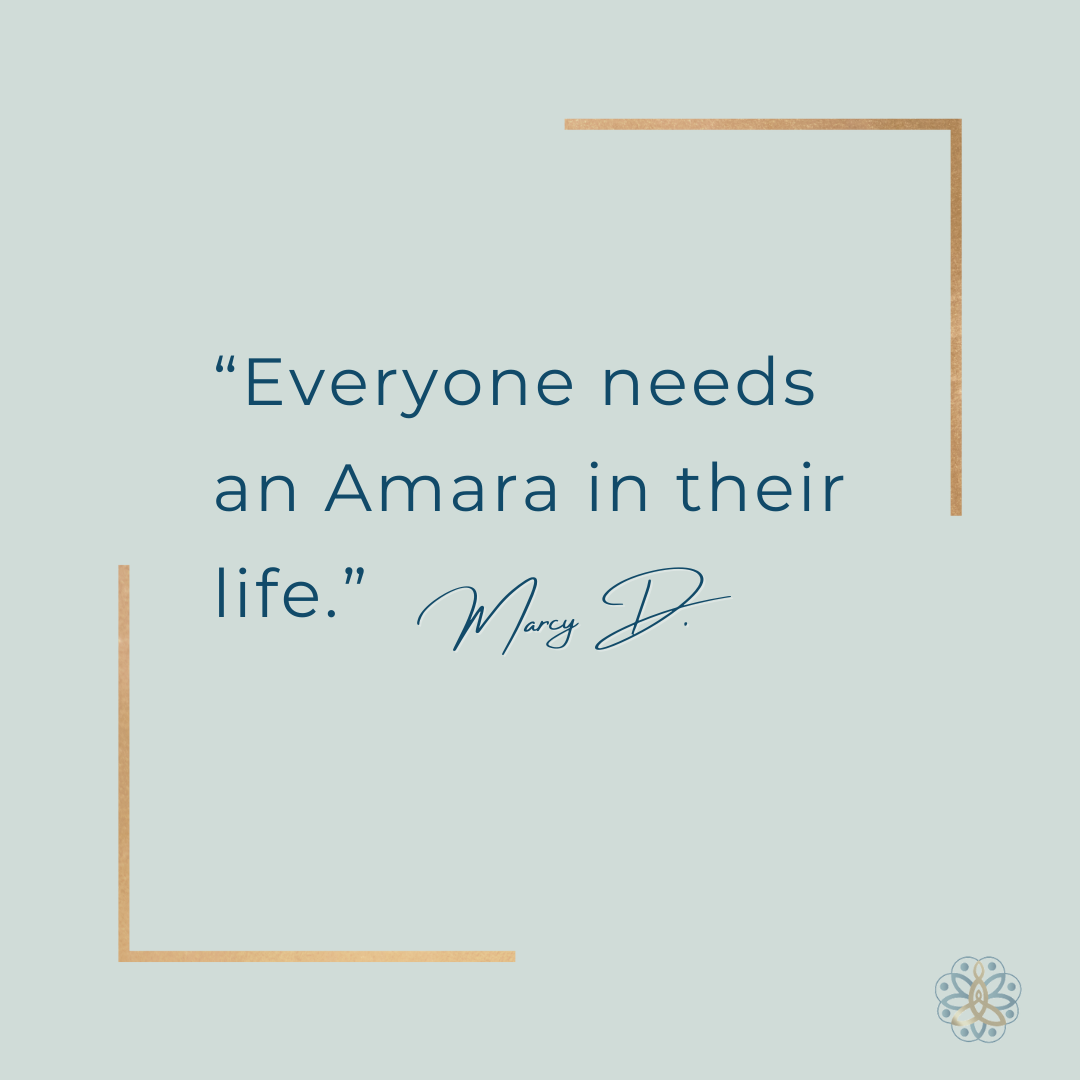 Having Amara in my corner feels like having a wise, loving friend who believes in me even on the hardest days. I honestly don’t know how I’d be doing motherhood without her.”